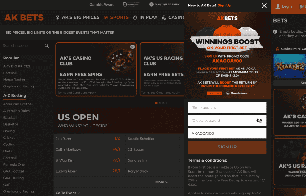 Click ‘sign up’ and a pop-up will appear that asks for your email address. You will also need to create a password. After this, enter the promo code in the appropriate field and join. This is all it takes to become a member of AK Bets.