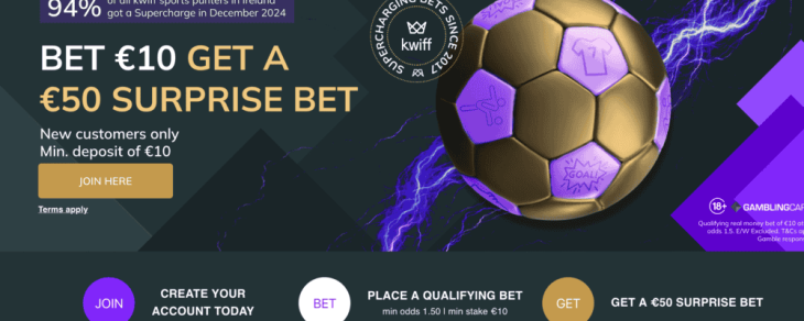 Kwiff are one of our top Irish bookmaker recommendations, thanks to their brilliant €50 surprise bet offer, their mobile apps, their First Past The Post promotion and many other ongoing promotions.